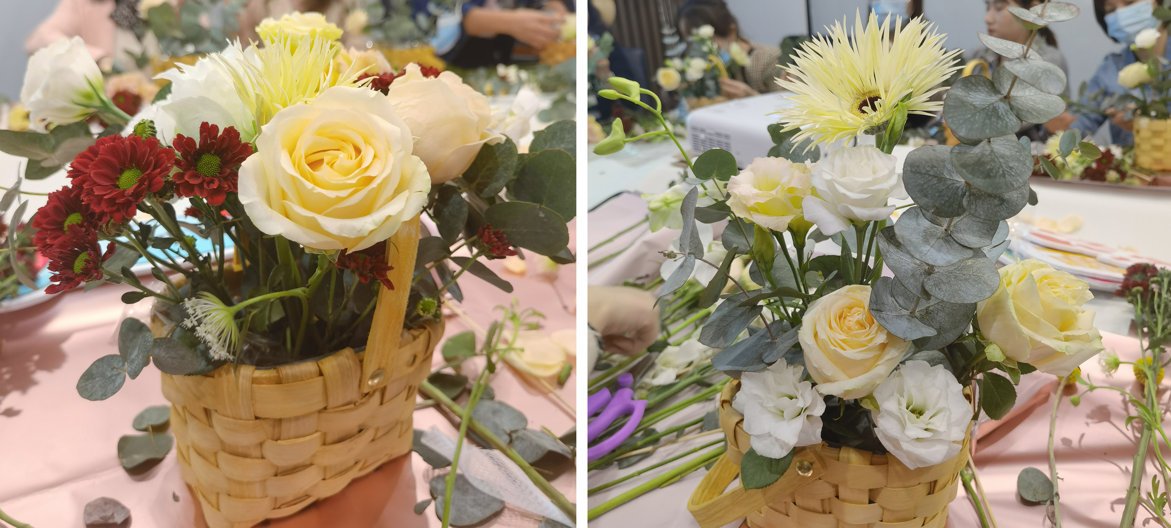 她们用自己的巧手和智慧,感受插花艺术的魁力,为幸福生活增添一份温馨和美感。