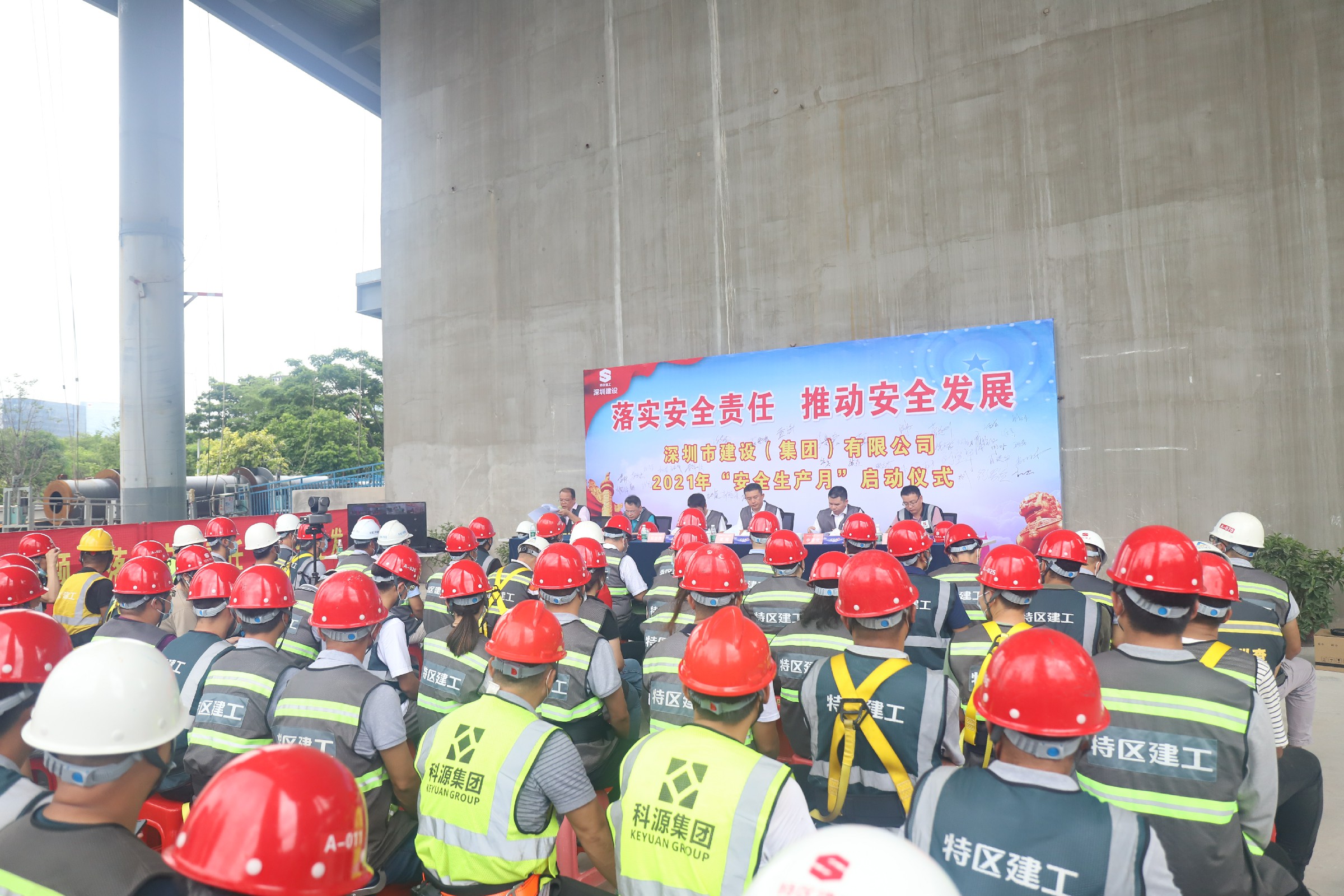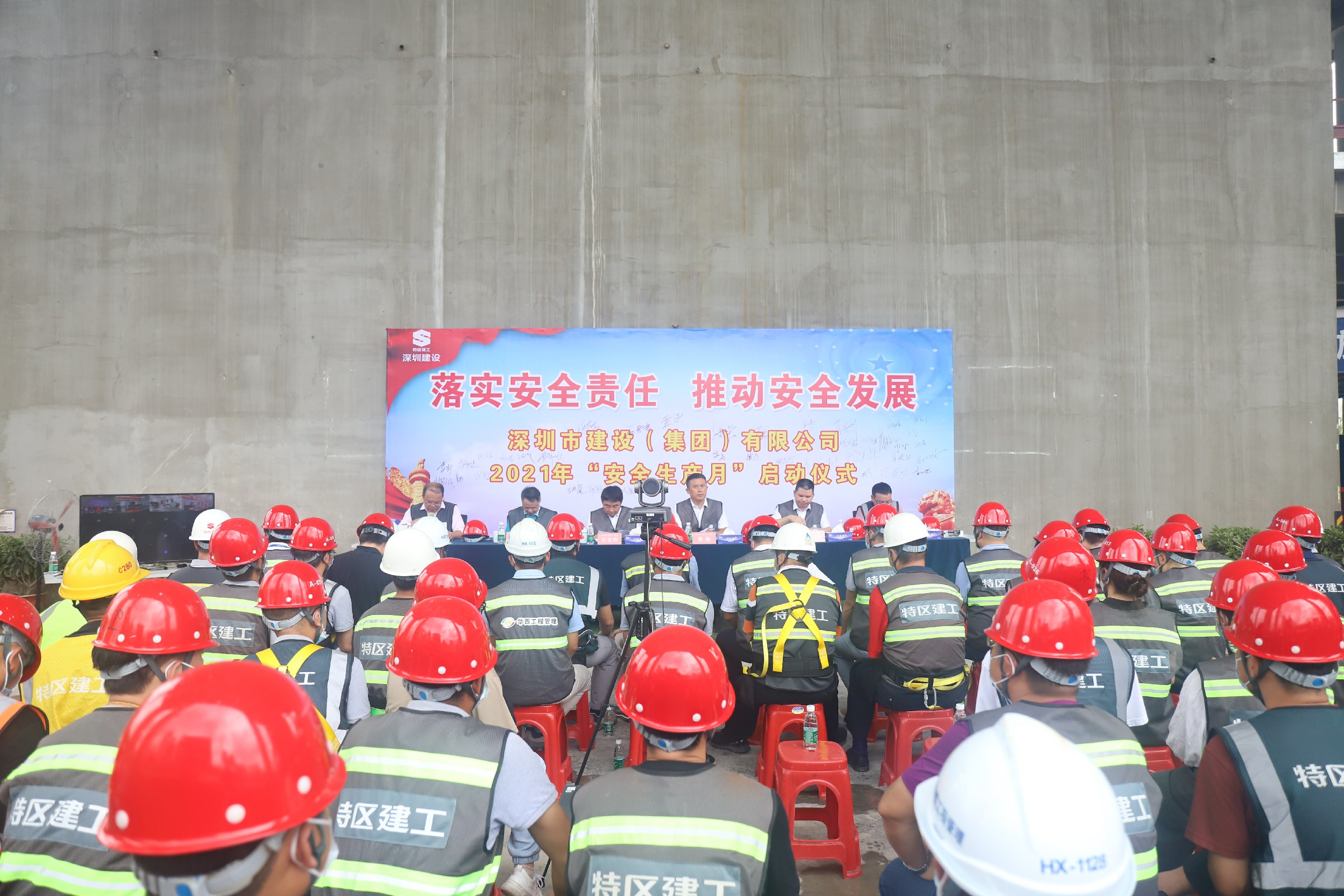 为认真贯彻落实习近平总书记关于应急管理和安全生产工作的重要论述精神,全面落实党中央、国务院、省委、市委以及特区建工集团关于“安全生产月”相关工作部署,扎实推进安全生产专项整治三年行动,建设集团决定于6月1日至30日开展以“落实安全责任,推动安全发展”为主题的“安全生产月”活动。6月1日下午,安全生产月活动启动会议在集团所属前海风投大厦项目正式召开。黄海董事长兼总裁、石宏伟副书记、李蕃荣副总裁、陈志龙总工程师、李孝军总助兼风投大厦项目经理和集团相关中心/部室、各分/子公司、各项目部领导同事通过线上、线下方式共同参会。