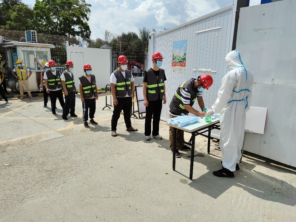 本次综合应急救援演练科目包括新冠肺炎疫情防控演练、触电急救救护演练、消防应急救援演练。并且分别设置各个科目的应急救援值班汇报及启动应急预案流程、通知项目部应急救援队伍到位流程、应急救援队伍按时到达后开展救援工作流程等三个流程。上午10时,综合应急救援演练总指挥、项目经理毛浣林宣布演练正式开始。应急救援队伍队员紧急集合,迅速行动,携带救援工具到现场开展演练。在各科目演练中,各参演人员反应迅速、分工明确、衔接流畅,按照预定流程相互配合、分组行动,经过近两小时的紧急处置圆满地完成了各项应急救援任务。