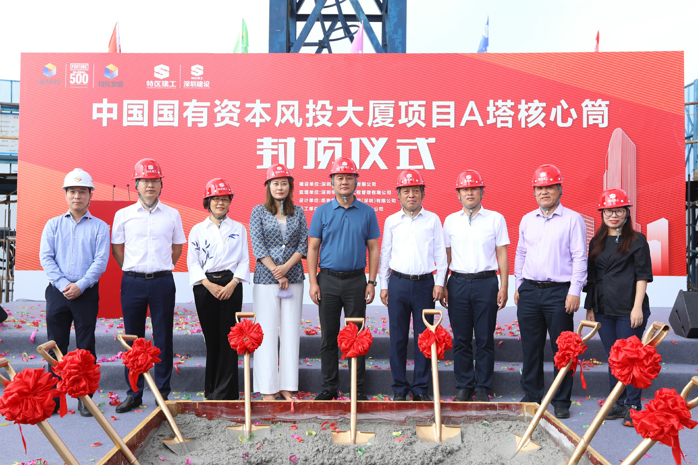 深圳市投资控股有限公司总工程师王戈、国新风险投资管理(深圳)有限公司执行董事范士钰等建设方相关领导、深圳市特区建工集团有限公司副总裁尹剑辉、安博线上官网(集团)官方网站董事长黄海和公司领导班子成员、以及设计单位领导、监理单位领导等出席封顶仪式。