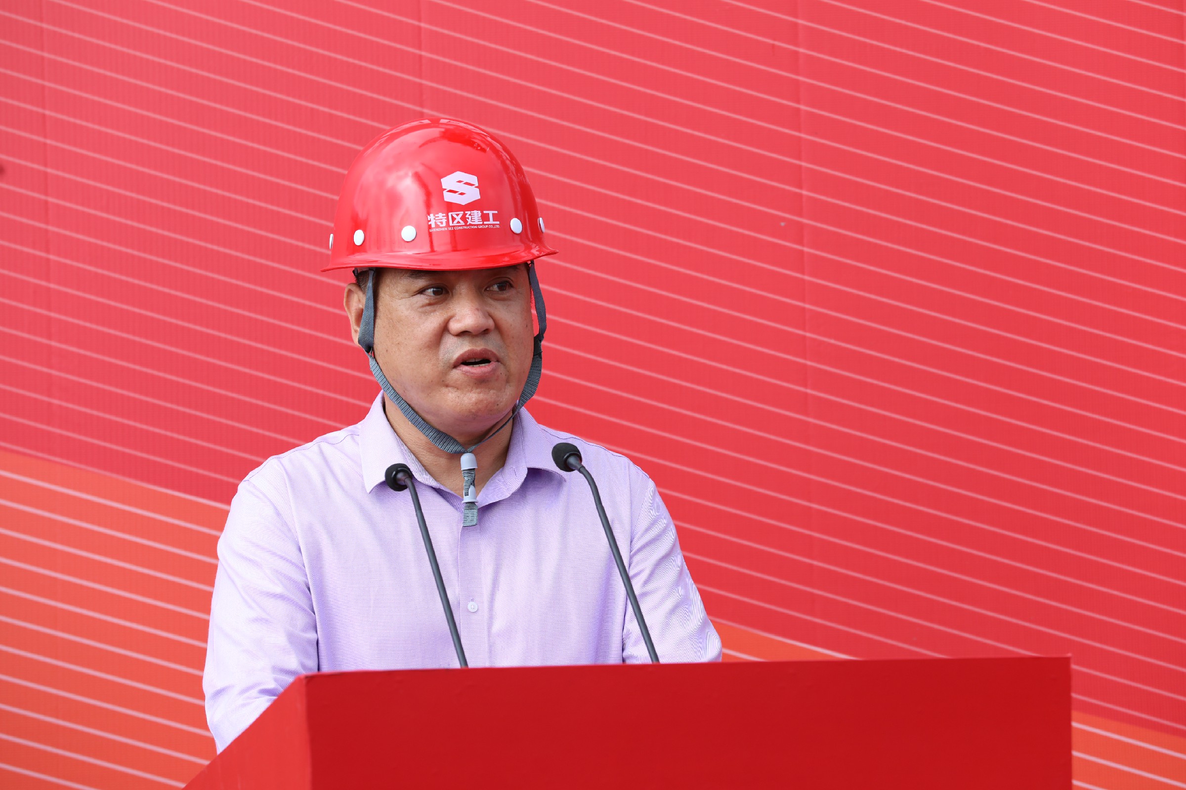 建设单位投控发展孙家利董事长在封顶仪式致辞中说,深圳市建设集团在特区建工集团的全力支持下,用团结拼搏、披荆斩棘、甘于奉献的精神,克服种种困难,扭转了不利局面,项目质量、安全、进度管理均取得了可喜的进步。此项目的顺利封顶是深圳建设集团全体员工和参建人员共同努力的结果,这标志着该项目建设取得了重要的、阶段性胜利,同时,为保证后续施工的顺利实施奠定了坚实的基础。期望建设集团和各参建单位再接再厉,继续拼搏,秉承确保安全、严把质量、保证进度的建设理念,为顺利实现项目交付使用继续努力。