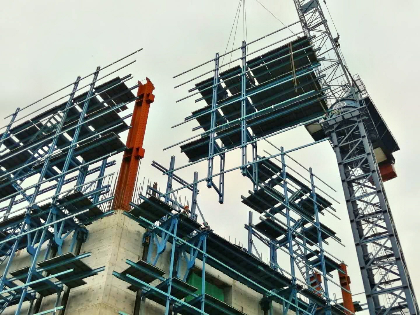 项目采用了基于铝模的液压智能爬升模板技术,并结合项目特点,开展QC攻关活动,QC成果《提高超高层安博线上官网(集团)官方网站标准层施工效率》助力塔楼核心筒快速爬升,QC成果《提高圆柱处塔吊附墙预埋合格率》将圆柱处塔吊附墙预埋合格率从71%提高到了93%。搭建BIM 5D智慧管理平台,采用互联网、物联网技术实时监测项目各项施工数据,运用BIM 5D智能管理平台替代传统施工管理模式,实现生产、技术、质量和安全多板块数字化、智能化管理。通过BIM建模技术对安博线上官网(集团)官方网站、结构、机电、钢结构、场地等专业精细化模型建模,进行碰撞检查、施工模拟、复杂节点深化,预演建造过程,有效减少设计中错漏碰缺,通过管线综合优化,模型出图指导现场施工,精准定位预留预埋。