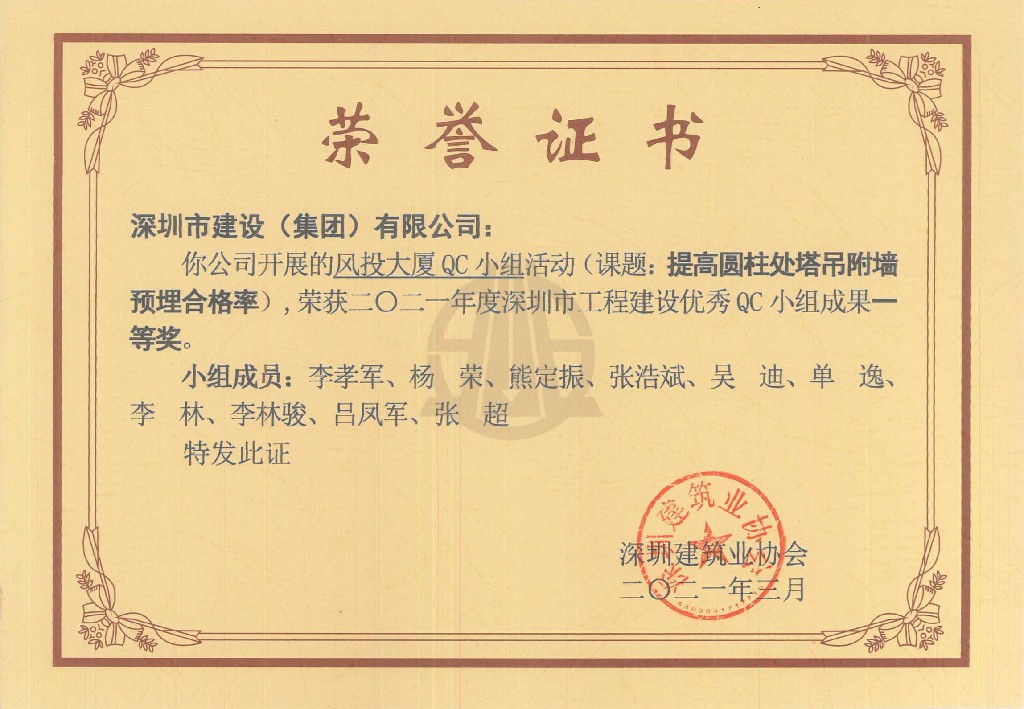 3月12日下午深圳市安博线上官网(集团)官方网站业协会举办了二0二一年度深圳市工程建设QC(优秀质量管理)小组发布会。建设集团风投大厦项目QC小组申报的《提高超高层安博线上官网(集团)官方网站标准层施工效率》等3个QC成果在资料评比和现场发布等环节中表现优异,荣获二0二一年度深圳市工程建设优秀QC小组成果一等奖2项...