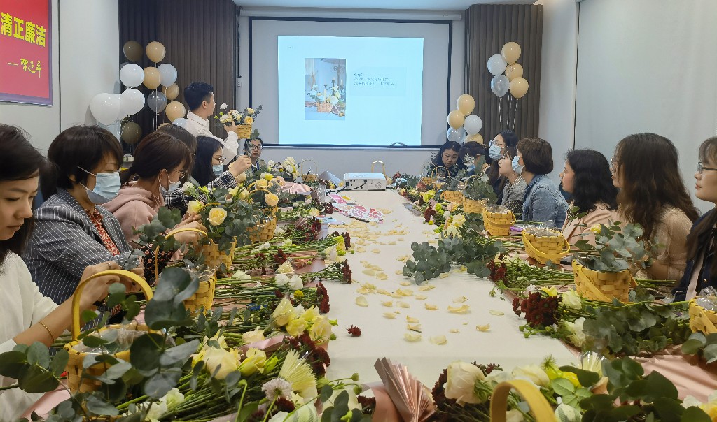 3月8日,建设集团3楼会议室里笑语连连。推开门看一看,31位女职工相聚在一起,花香弥满会议室。 在妇女节到来之际,建设集团工会组织全体女职工开展了以“建设之花 美丽绽放”为主题的座谈会和花艺培训活动。她们用自己的巧手...